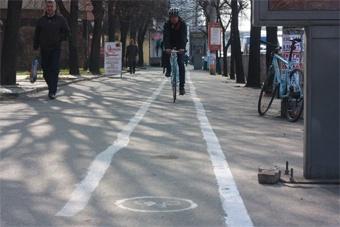 По словам Александры, вчера во второй половине дня на Ленинском проспекте она заметила, что слева на тротуаре появилась неширокая полоска, выделенная по обеим сторонам белой краской, со значком «велосипедист». «Она кривенькая и косенькая, да и прохожие на нее, конечно, не обращают внимания, просто идут по ней, но велосипедисты пользуются», — отметила Александра.