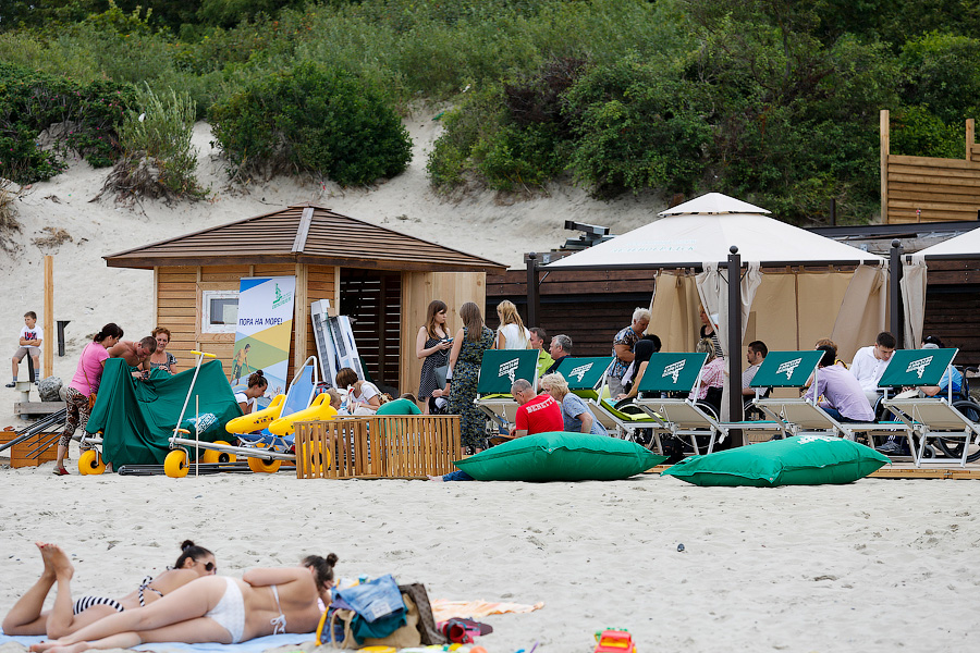 Всего для адаптированного пляжа были закуплены восемь итальянских лежаков со специальными матрасами против пролежней, две плавательные коляски, устроены специальные навесы и просторная раздевалка. «Если на