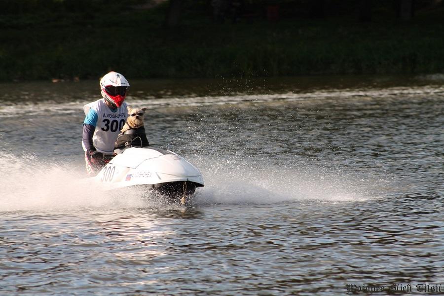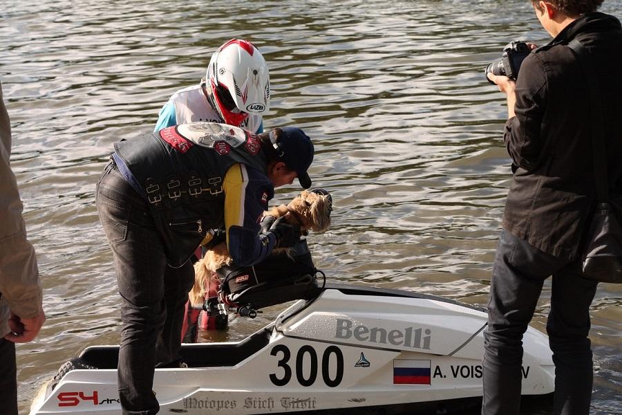 Пес-байкер по кличке Стич поменял привычный ему мотоцикл на аквабайк. Его хозяин Роберт Молис даже планирует участвовать со своим питомцем в Кубке Балтики по