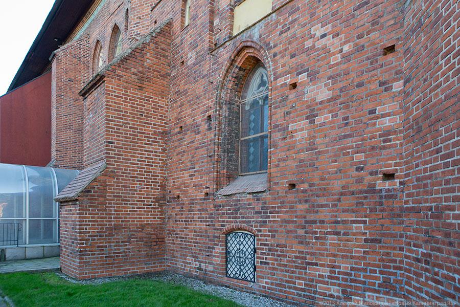 Проблемные участки в здании Кафедрального собора имеются, констатирует руководство учреждения в лице директора Аркадия Фельдмана. Аварийным участком сейчас является стена слева от входа, по другую сторону которой находится православная часовня. Еще недавно снаружи она была покрыта плесенью, теперь на одном из участков плесень сняли, покрыв кирпич водоотталкивающим составом. Но полностью проблему это не решит: по словам специалистов, в стенах еще осталась влага, и чтобы от нее избавиться, необходимо проводить комплексные работы.