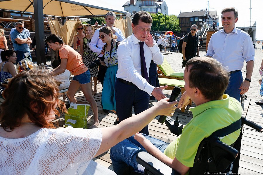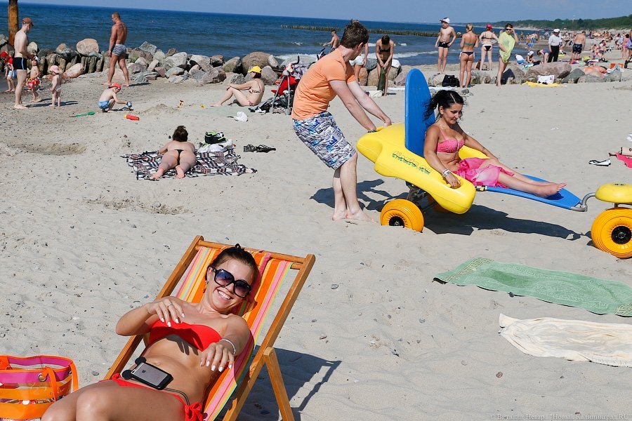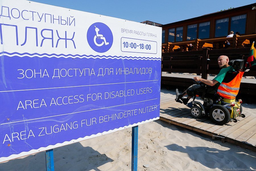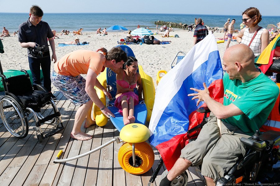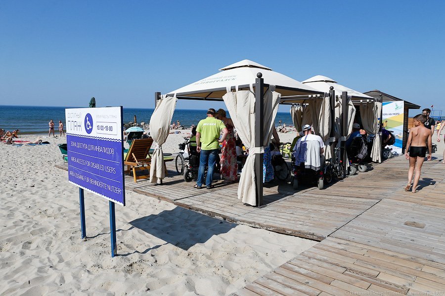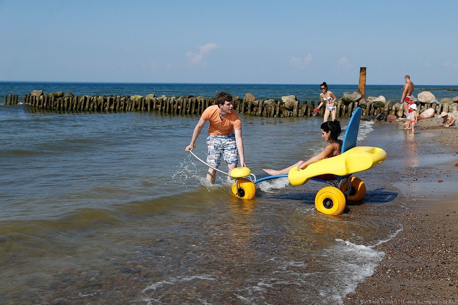 Активисты региональной общественной организации инвалидов «Ковчег» в понедельник открыли очередной сезон «Доступного пляжа». К услугам людей с ограниченными возможностями здесь — оборудованный пандусами удобный спуск к морю, специальные шезлонги, раздевалки и даже коляски для купания. На открытие «Доступного пляжа» приехал Министр труда РФ Максим Топилин, который заявил, что в этом году регион получит на развитие «Доступной среды» еще 15 млн рублей, и пообещал поддержку подобным проектам. Подобные пляжи должны в этом году появиться в Янтарном и Пионерском. На создание пляжей для маломобильных групп населения выделено более 6,5 млн рублей.