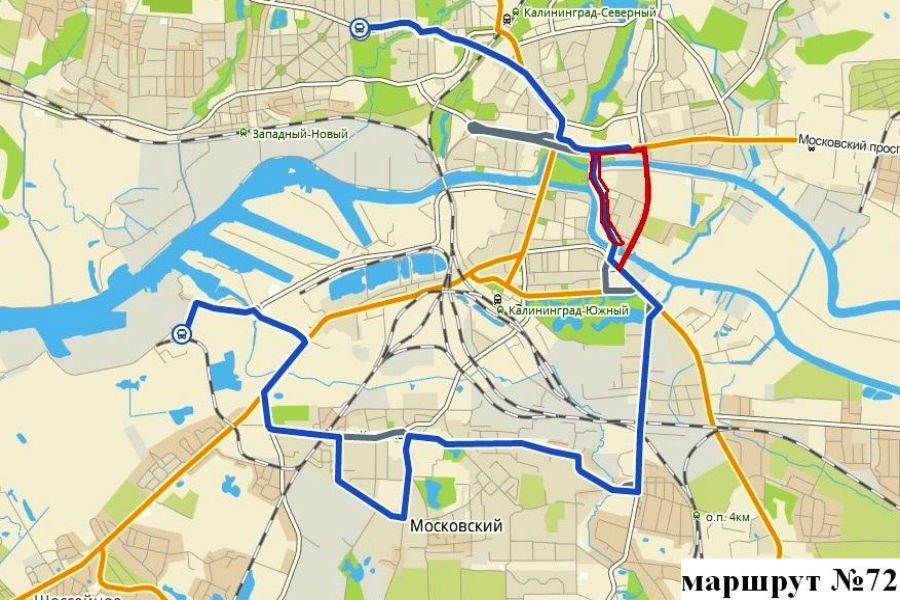 Маршрут № 72 «Ул. Е. Ковальчук — Завод „Янтарь“» поедет по Московскому проспекту, улице Октябрьской, будет разворачиваться в районе остановки «Набережная Ветеранов», далее пройдет по Московскому проспекту, второй эстакаде, улице Октябрьской, проспекту Калинина, улице Дзержинского и далее — по существующему маршруту.