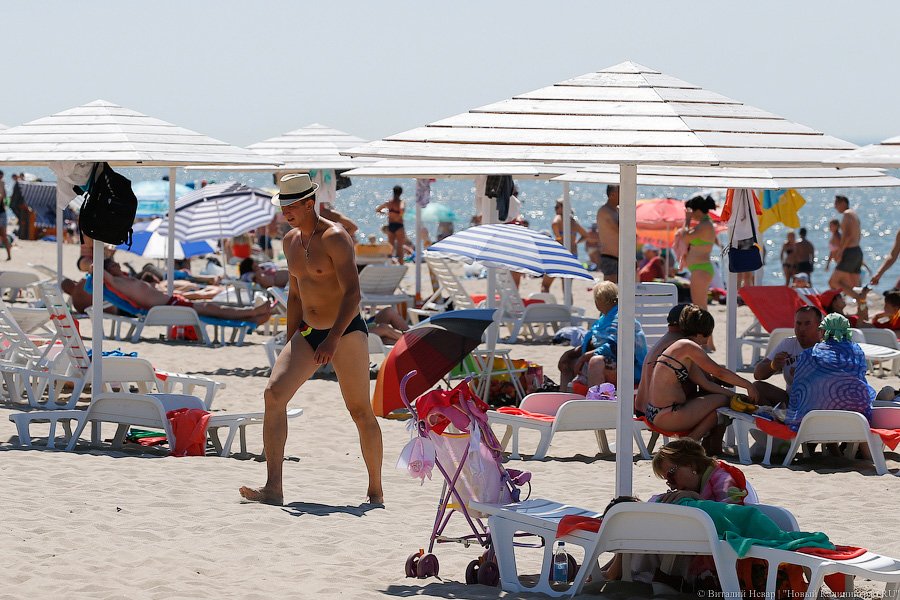 А вот удовольствие посетить туалет — платное, и обходится в 15 рублей. За 250 рублей отдыхающие могут на весь день арендовать лежак с зонтиком, в комплект входит полотенце. Количество лежаков ограничено — на пляже их 100. Угнездиться в пляжную