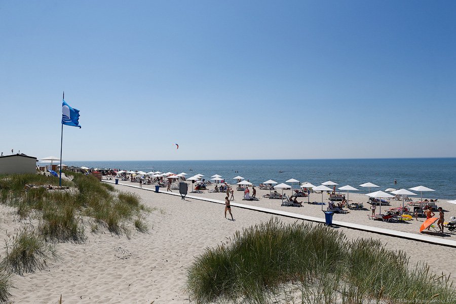 Корреспонденты «Нового Калининграда.Ru» съездили в Янтарный, чтобы оценить широко разрекламированный в сетях пляж, первым в России получивший в этом году сертификат «Голубой флаг». И с радостным удивлением не обнаружили на пляже ни одного рассекающего по песку джипа.