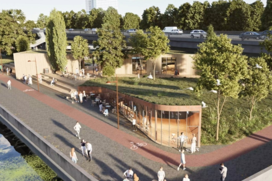 — Павильон, стены которого будут формировать ландшафт, то есть на нём будет зеленый газон. Рядом сейчас сооружается второй павильон, оба объекта — для кафе, которых так не хватает на острове в этой зоне. В продолжение концертной площадки под мостом планируем разместить конструкции для фотовыставки. Таким образом, всё пространство будет иметь какой-то смысл, культурный смысл.