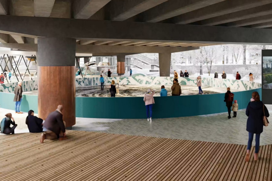 В результате получили пустое пространство в депрессивном месте. Но концепцией благоустройства было предусмотрено размещение большого экрана под мостом. Мы решили переместить экран в другое место, тоже под мостом, и к нему оборудовать небольшой зрительный зал. В результате получим отличную концертную площадку, на которой может происходить много чего интересного.