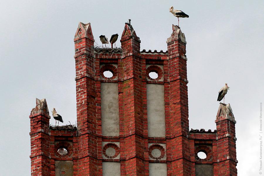 23 мая 2010 года. Аисты на крыше кирхи в поселке Дружба Правдинского района. ©"Новый Калининград.Ru"/Алексей Милованов