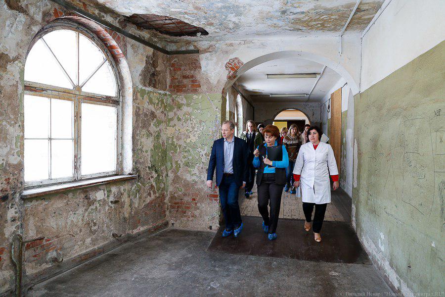 12 января 2017 года. Делегация правительства Калининградской области рассматривают здание больницы скорой медицинской помощи в областном центре в рамках мероприятий по подготовке к Чемпионату мира по футболу 2018 года.