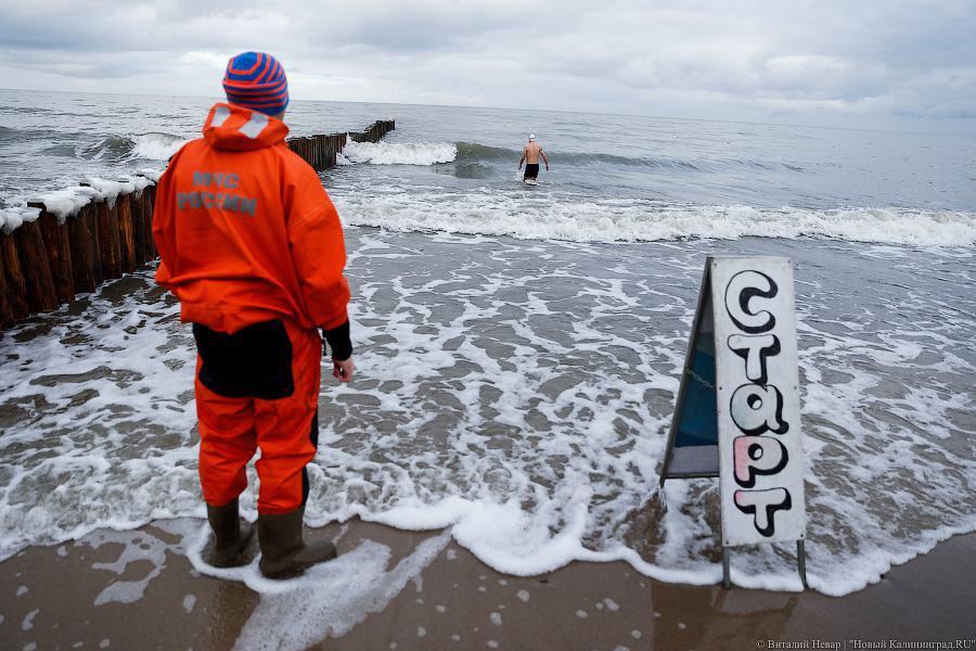 14 января 2017 года. Зеленоградск. Мировой рекордсмен в зимнем плавании на спине Олег Резанов ставит новый рекорд в акватории Балтийского моря.