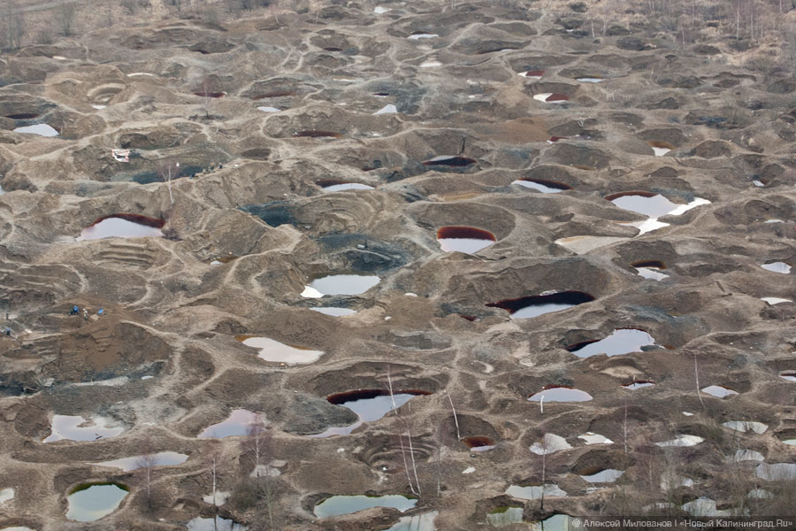 20 марта 2017 года. Последствия нелегальной добычи янтаря в Зеленоградском районе Калининградской области. Съемка с вертолета.