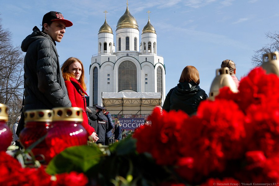 В Калининграде на площади Победы в субботу, 8 апреля 2017 года, прошёл митинг «Вместе против террора». Около 3 тысяч человек принесли цветы, свечи и лампады в память о погибших и пострадавших в теракте в Санкт-Петербурге.