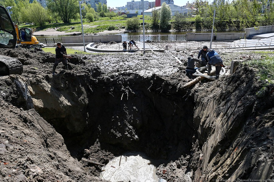 12 мая 2017 года сотрудники «Водоканала» занимаются устранением прорыва водопровода на набережной Адмирала Трибуца в Калининграде.
