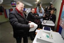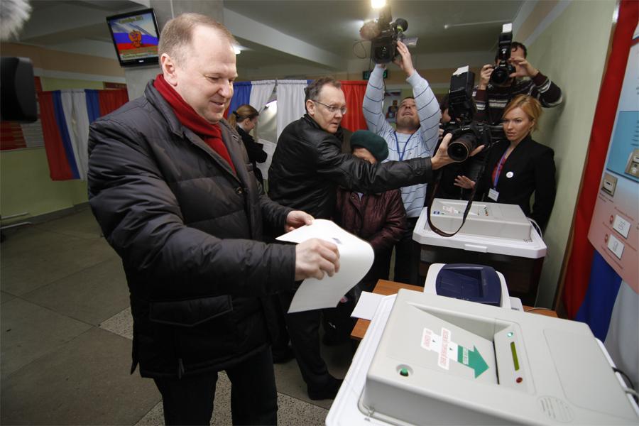 4 декабря 2011 года. Губернатор региона Николай Цуканов голосует на избирательном участке №213 в школе №33 на ул. Куйбышева в Калининграде.