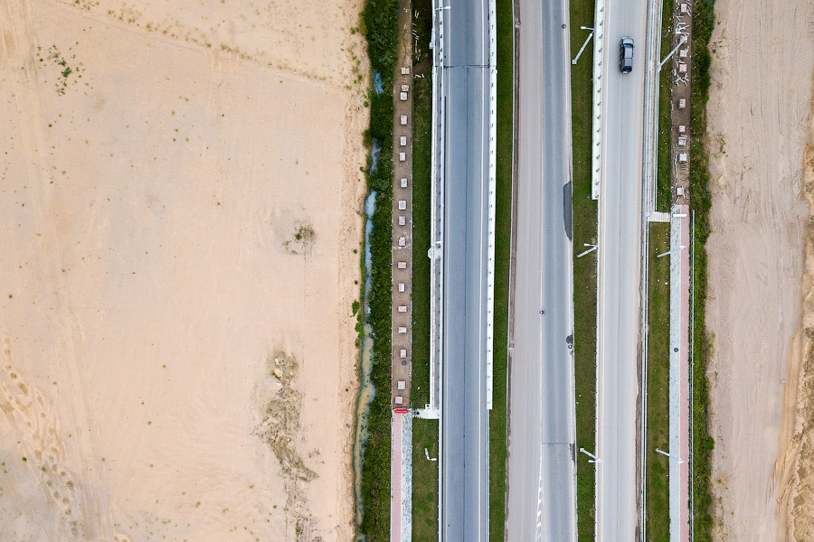 5 сентября 2017 года: так выглядят с высоты съезды со второй эстакады на Остров, рядом с которыми перестраивают велосипедные дорожки.