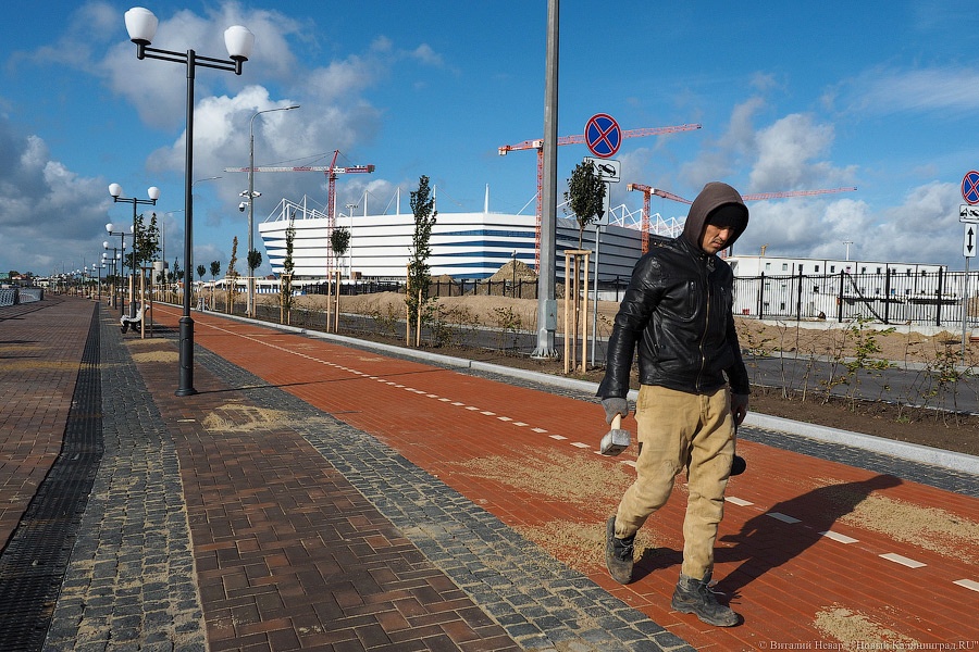 11 октября 2017 года работы на Парадной набережной возле строящегося стадиона «Калининград» на острове Октябрьский продолжаются. Строительство стадиона и благоустройство территории Острова приурочено к Чемпионату мира по футболу. Несколько матчей Чемпионата пройдут в Калининграде в июне и июле 2018 года.