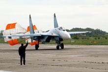 11 мая 2012 года. Истребитель-перехватчик Су-27П выполняет тренировочные полёты на аэродроме в Чкаловске.
