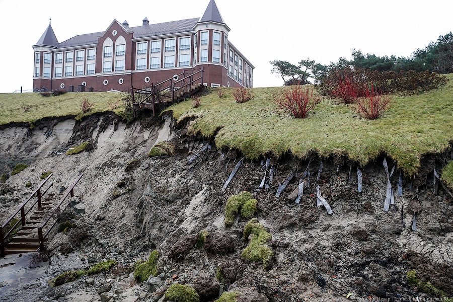 У государственной резиденции «Янтарь» в Пионерском вновь обрушился берег. В отдельных местах провалы достигают до 2 метров в глубину. В начале февраля стало известно, что в Пионерском в районе резиденции главы государства из-за штормов, сильного износа пляжеудерживающих бун и повреждения подпорных плит берегозащитных конструкций начал осыпаться склон. В мае этого года власти сообщали, что у променада вдоль резиденции в Пионерском проведены «укрепительные работы» и «вопрос аварийности снят». Резиденцию используют федеральные чиновники топ-уровня, в том числе, президент, когда прилетают в Калининград в командировку.