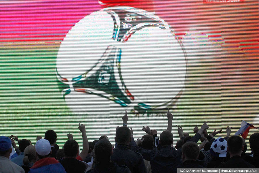 8 июня 2012 года. Калининградские болельщики радуются голу, забитому в ворота сборной Чехии российскими футболистами на Чемпионате Европы по футболу 2012 года.