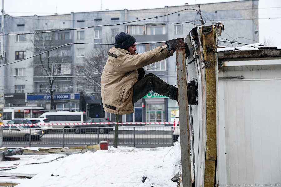 В понедельник, 12 февраля, у Центрального рынка в Калининграде продолжился снос торговых павильонов,