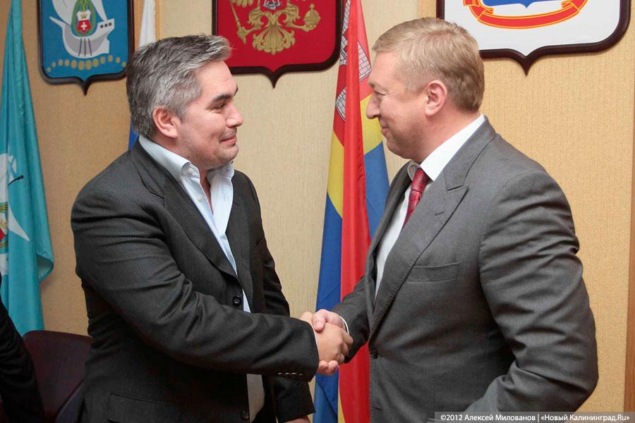 18 октября 2012 года. Избранный глава Калининграда Александр Ярошук и избранный депутат окружного Совета депутатов Арсений Махлов в четверг получили свои удостоверения.
