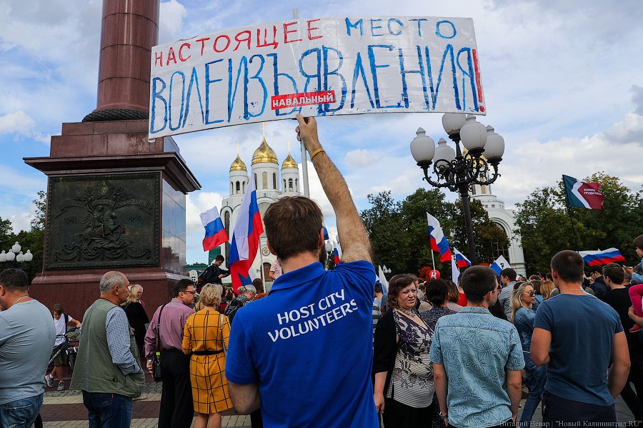В Калининграде 9 сентября состоялся несогласованный митинг против повышения пенсионного возраста, организованный сторонниками Алексея Навального. Протестующие устроили шествие по центру Калининграда и выступили на площади Победы. Полиция проведению акции не мешала.