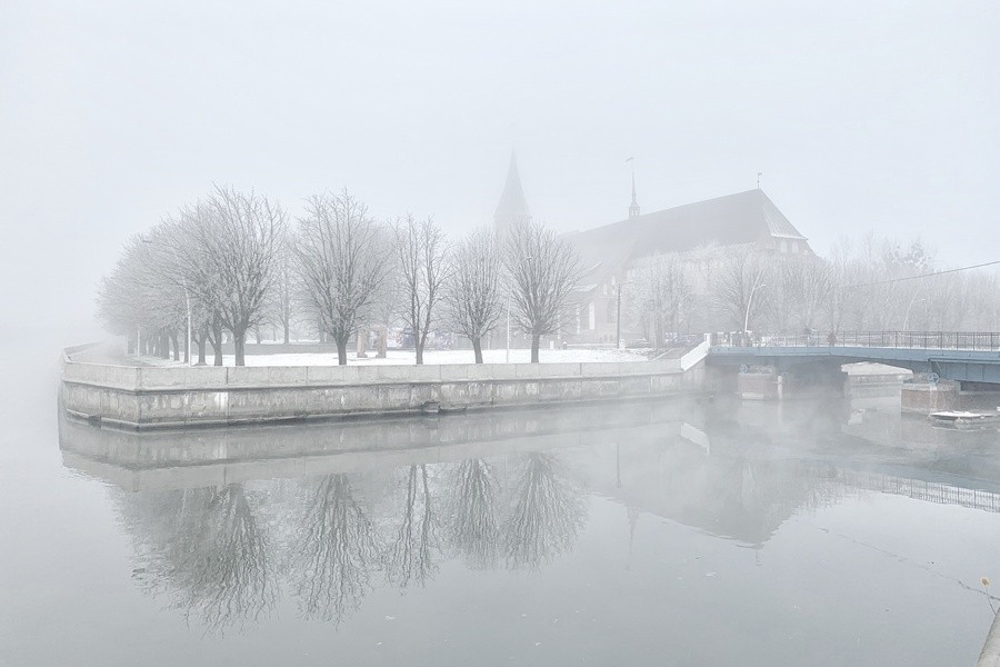 В среду, 28 ноября, температура в Калининграде опустилась ниже нуля, а город окутал туман. Зима близко!
