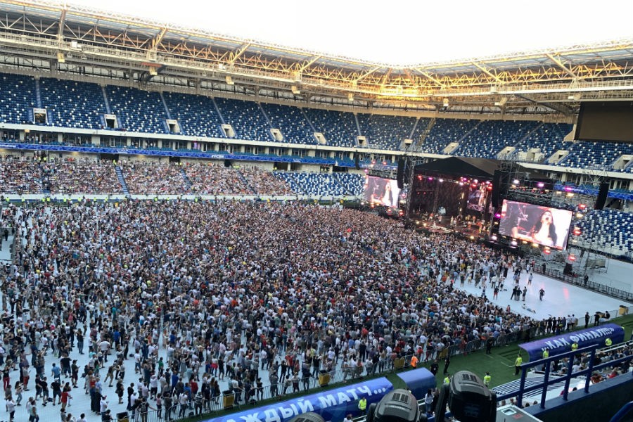 На новом стадионе состоялось первое большое нефутбольное мероприятие. Им стал концерт группы «Ленинград», это произошло почти через год после окончания матчей Чемпионата мира по футболу.