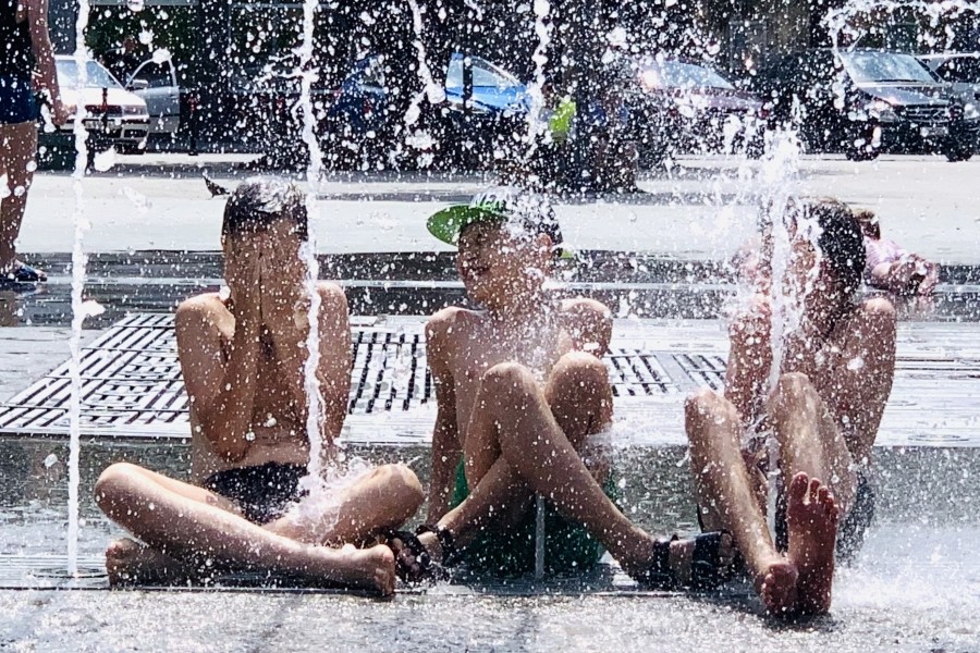 В среду, 26 июня, в Калининград вернулась жара. Столбик термометра в областном центре поднялся до отметки +30 °С, превысив исторический максимум в этот день. Пока взрослые спасаются под кондиционерами, дети охлаждаются в городском фонтане у здания Кёнигсбергской биржи.
