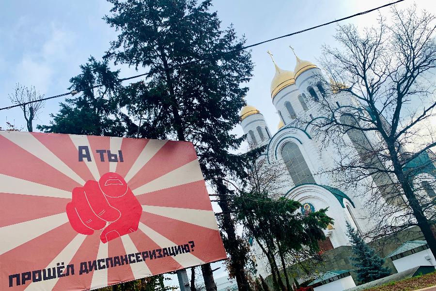В Калининграде стали появляться баннеры, пропагандирующие здоровый образ жизни. Один из билбордов размещен в центре города возле Кафедрального собора Христа Спасителя.