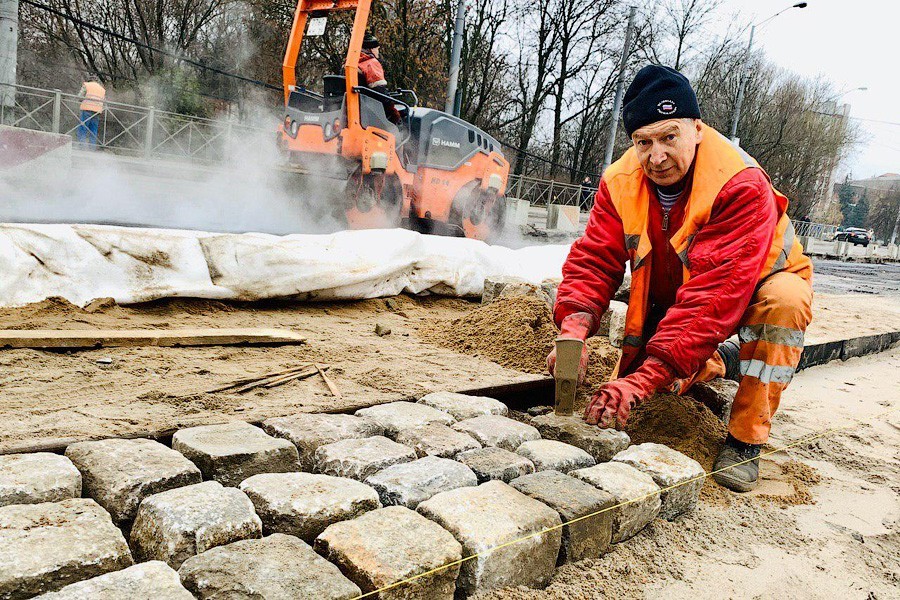 На ремонтируемом участке ул. Киевской идёт укладка временной брусчатки, которую позже должны убрать. Сейчас городские власти готовятся открыть техническое движение