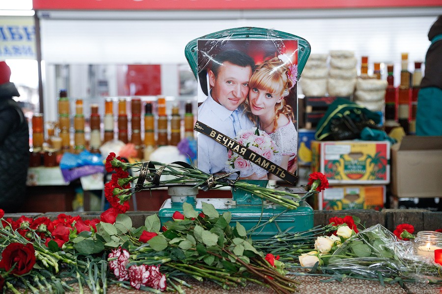16 февраля: цветы на торговом месте убитых предпринимателей