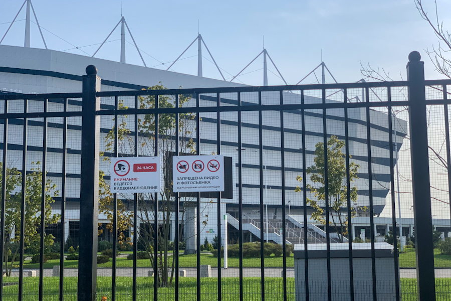 На ограждении вокруг стадиона «Калининград» висят таблички с информацией о запрете фотографировать спортивный объект, а также запускать над ним беспилотные летательные аппараты. Как