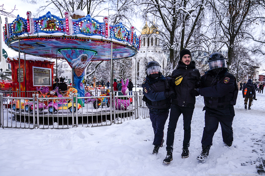 В воскресенье в Калининграде, как и во многих городах России, прошла несогласованная с властями акция протеста в поддержку политика Алексея Навального. В центре города собрались несколько сотен человек, около 15 из них задержали.