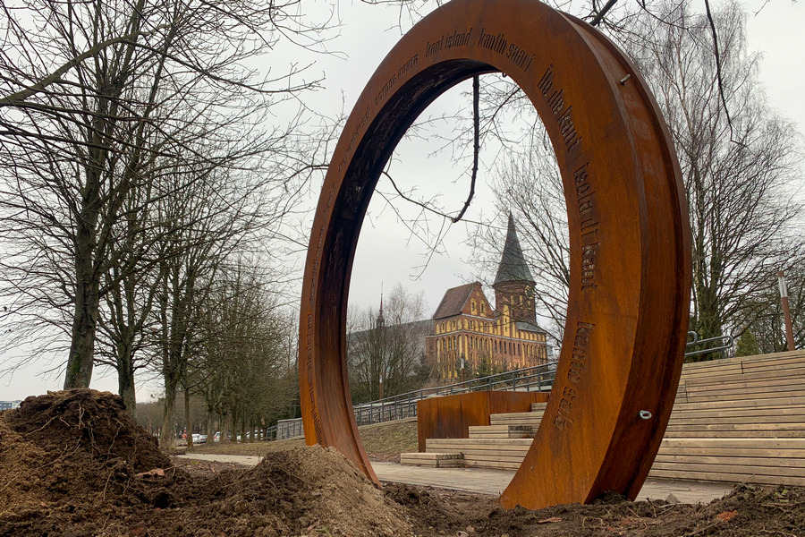На острове Канта установили новый элемент благоустройства — кольцо из кортеновской стали. На нём на разных языках написано «Остров Канта». В Кафедральном соборе отметили, что у инсталляции будут интерактивные функции, но о них расскажут позже.