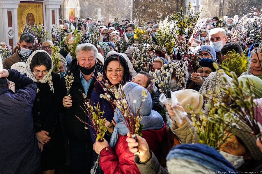 25 апреля 2021 года. Праздничная служба на Вербное воскресенье в Кафедральном соборе Христа Спасителя в Калининграде.