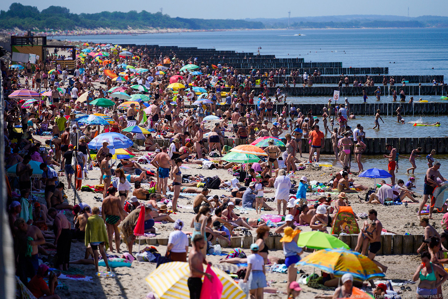 20 июня 2021 года. В Калининградской области жара, температура воздуха днем достигала 35 градусов. На пляже в Зеленоградске толпы людей. За минувшие сутки в регионе выявлен 101 новый случай коронавируса.