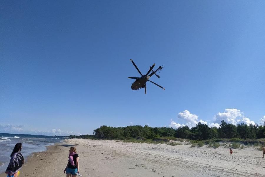 В воскресенье, 22 августа, военный вертолет пролетел вдоль пляжа между Куликово и Зеленоградском.