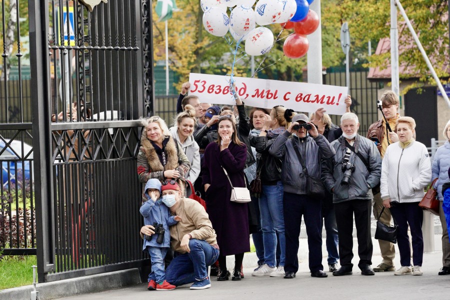 В Нахимовском училище прошло очередное посвящение в нахимовцы. Из-за коронавирусной инфекции второй год подряд торжественная церемония проходит без родных, которые подбадривают повзрослевших мальчиков издалека.