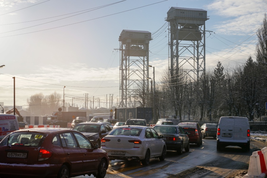 Проезд по улице Буткова в Калининграде на участке, примыкающем к набережной Баграмяна, стал сложнее: накануне власти на два года ограничили там движение по трем полосам из-за строительства автодублера двухъярусного моста.