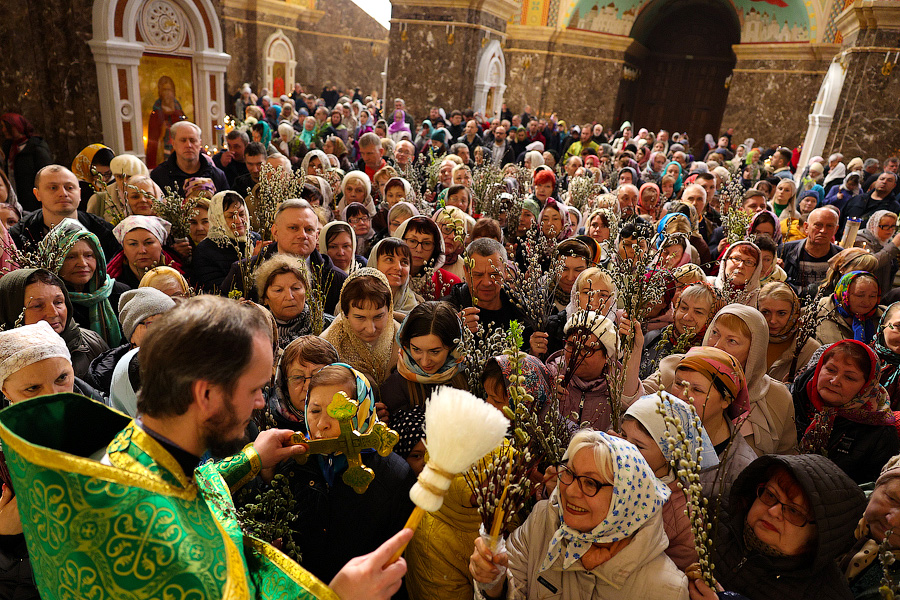 9 апреля 2023 года. В Кафедральном соборе Христа Спасителя в Калининграде прошло праздничное богослужение по случаю Вербного воскресенья. Это православный праздник, посвященный появлению Иисуса Христа в Иерусалиме. Вербное воскресенье традиционно наступает за неделю до Пасхи и предваряет Страстную неделю.