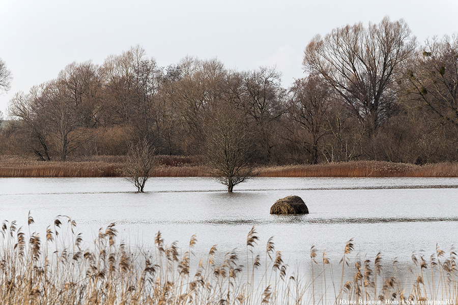 Разливы рек в этом году приобрели в Калининградской области невиданные масштабы и затронули даже те муниципалитеты, где быстрое таяние снегов обычно проходит практически незаметно. С конца января и до середины февраля автомобилисты, проезжающие по отрезку федеральной трассы от Талпак до Черняховска, могут наблюдать, как Преголя вплотную подошла к дороге. В частности, это произошло в районе поселка Бережковское.
