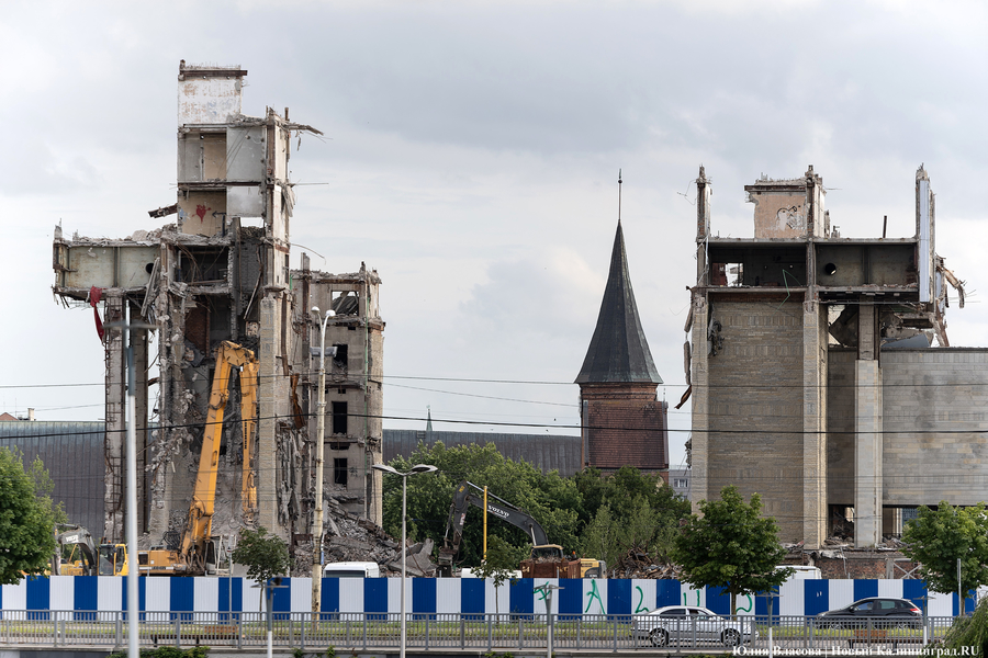 Дом Советов не удалось полностью разобрать к началу июля. Как и предсказывала бывшая сотрудница СМУ-4 Татьяна Василенко, отвечавшая за качество строительства этого объекта, у подрядчика, судя по всему, есть трудности со сносом основания здания. Зато сквозь обломки прямо сейчас открывается живописный вид на Кафедральный собор