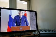 28 апреля 2014 года: Губернатор Калининградской области Николай Цуканов выступает с посланием к депутатам областной Думы.