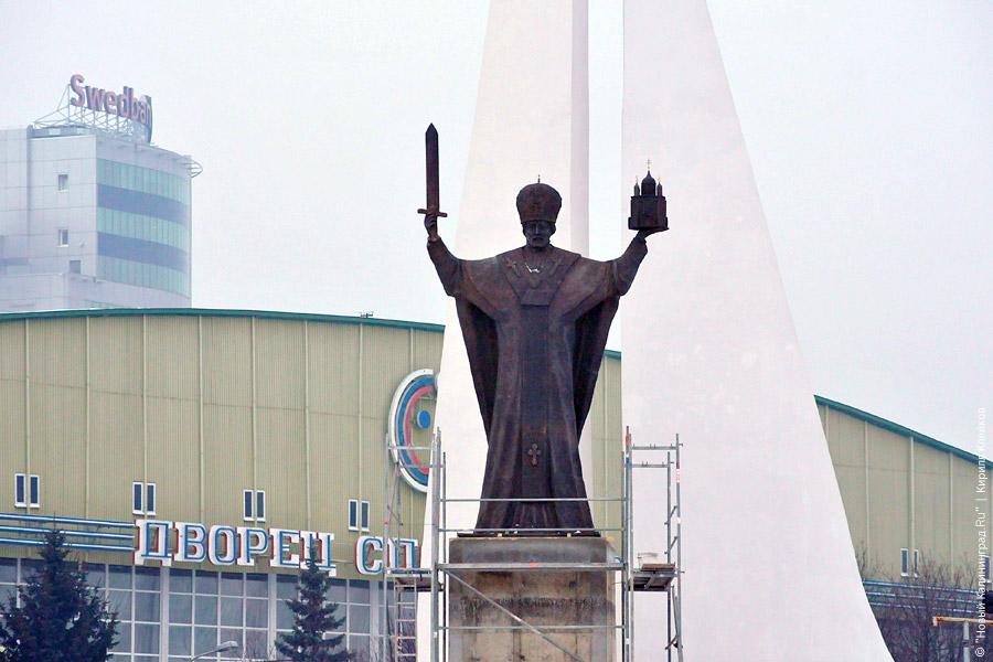 21 декабря 2009 года. В Калининграде на главном фасаде памятника «Пионерам океанического лова» у Музея Мирового океана идет установка 6-метровой скульптуры святителя Николая Чудотворца.