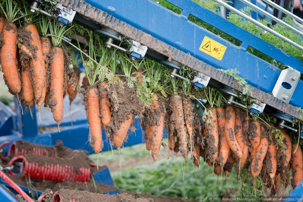 Выглядел процесс уборки импортозамещающего корнеплода в самом деле впечатляюще. Специальная (естественно, импортная) машина выдёргивала морковки (выращенные из импортных семян) из земли за хвостики и тащила их в кузов трактора, попутно от хвостиков избавляясь. Правда, процесс уборки урожая только начался, техника ещё в процессе настройки, поэтому за комбайном оставался щедрый след упущенной моркови. Назначенный на прошлой неделе