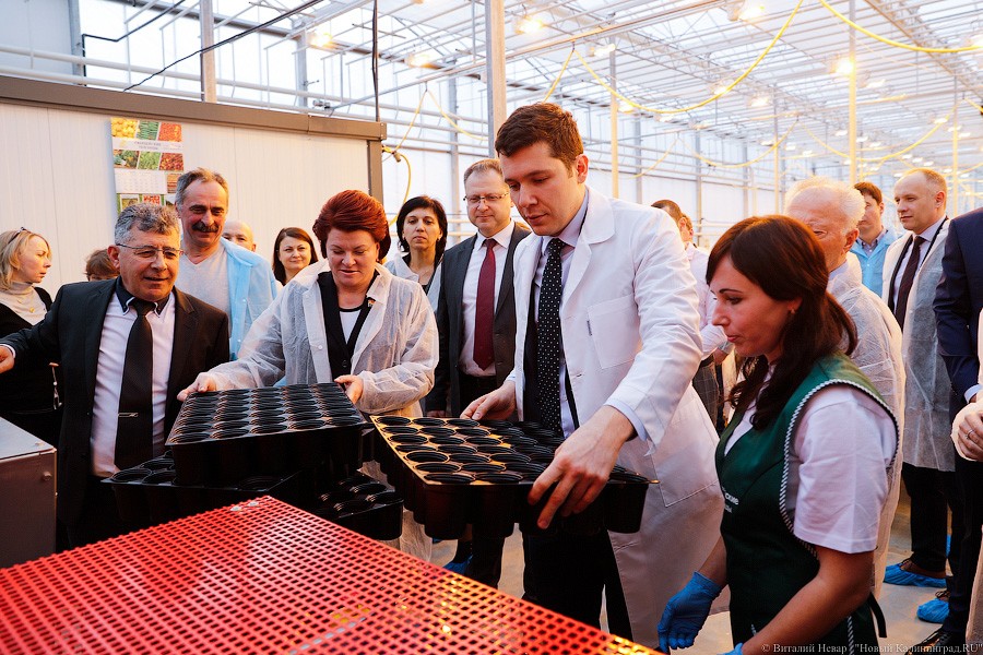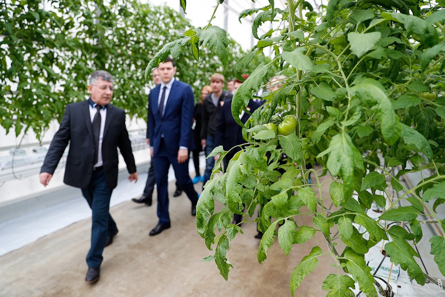 Церемония перетекла в традиционный марш-бросок по тепличному комплексу. Мамедов, Алиаханов и спикер облдумы Марина Оргеева, похрустывая огурцами, бодро шагали мимо бесконечных кустов, за ними преданно тащилась свита человек еще так из 50-ти. Троица успела покататься на самодвижущихся тележках, намотать с пару километров и посадить по паре лотков салата. Процесс, правда, автоматизирован, так что идейный вдохновитель «зеленной» части комплекса просто сунул пустые ящики в своеобразный конвейер, понаблюдал, как горшочки заполнились сначала землей, а потом семенами, и встретил лоток на выходе с конвейера. В лоток немедленно воткнули табличку с фамилией чиновника.