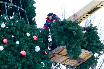Ведь различные предложения на сайтах фирм, занимающихся елочным бизнесом в особо крупных масштабах, оценивают наиболее пышных искусственных красавиц означенной высоты в сумму до 4 миллионов. Плюс, конечно, украшения, доставка, монтаж. Стоит ожидать никак не менее, чем «ели светодинамической», около шести тонн весом, с нижним ярусом диаметром не меньше девяти-десяти метров.