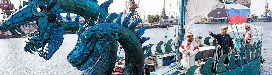 В Калининград прибыл «Змей Горыныч». Именем сказочного чудища называется ладья, нос которой украшают три головы легендарного змея. Ладью построили в Самарской области в духовно-культурном центре «Богатырская слобода». Сейчас она совершает экспериментальную экспедицию «Путь Рюрика» — поход, в котором команда намерена проверить гипотезы происхождения легендарного князя, с призвания которого началась русская государственность. Родину Рюрика ищут где-то в Балтийском море, поэтому Горыныч обошёл уже все страны Балтики, а теперь дошёл до Калининграда. Здесь ладья примет участие в фестивале Музея Мирового океана «Водная ассамблея» 15 сентября и останется на зимовку, после которой экспедиция попробует повторить маршрут переселения Рюрика в Старую Ладогу. Главный редактор «Нового Калининграда» Денис Туголуков побывал на борту «Горыныча» и пообщался с руководителем проекта иеромонахом Феоктистом.