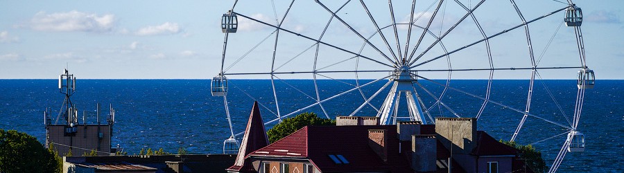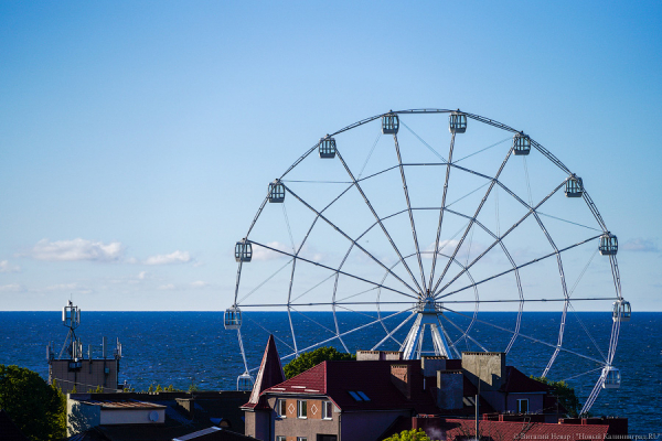 С глаза смотри. В субботу, 29 мая, в Зеленоградске на променаде запустили колесо обозрения «Глаз Балтики». Аттракцион высотой 50 метров установили на площади «Роза ветров», с него открывается вид на старую часть города, а также можно рассмотреть Куршскую косу, залив и, естественно, Балтийское море (его с променада отлично видно и без аттракциона). Владельцы колеса утверждают, что оно полностью безопасно даже в шторм, но «Глаз Балтики» планируют останавливать при силе ветра более 15 м/c, потому что кабинки начинают раскачиваться и пассажирам «будет некомфортно». В кабинку вмещается шесть человек, лишних пассажиров к семьям и компаниям обещают не подсаживать. Внутри — мягкие сидения, климат-контроль и панорамные окна. Одним из первых на новом колесе обозрения прокатился фотокорреспондент «Нового Калининграда» Виталий Невар.