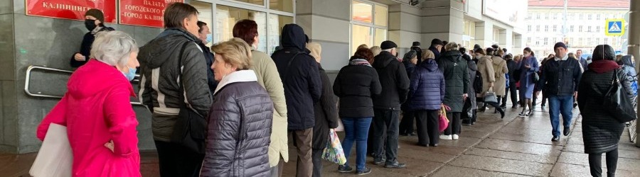 28 октября в Калининградской области начался очередной локдаун. И хотя с утра обстановка в городе была довольно рабочей, рейды с участием полиции быстро привели предпринимателей в чувство. Заболеваемость ковидом в регионе продолжает расти. За сутки рекорд подрос на 8 пунктов и почти достиг отметки в 400 новых случаев. В числе заболевших — 100 пенсионеров, 9 медиков, 14 детей, шестеро из которых посещают детсад, 28 школьников и 13 студентов. Но безумство храбрых это не поколебало: с утра к дверям многофункционального центра на площади Победы в Калининграде выстроилась очередь. Вероятно, большинству заявителей пришлось уйти ни с чем, потому что МФЦ хоть и открыты в период с 28 октября по 30 ноября, но в обслуживают ограниченное число клиентов (см. постановление). Правительство меж тем накануне немного расширило список исключений, позволив работать магазинам по продаже медицинских, ортопедических, оптико-офтальмологических изделий, детских товаров и цветов.